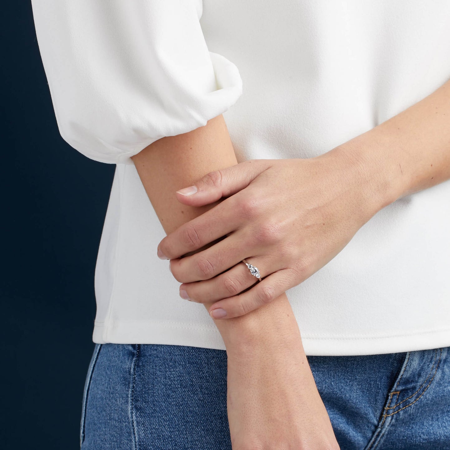 Dans sa version accompagnée de diamants naturels taillés en poire, découvrez Maylis, un solitaire épaulé d’un charme indéniable.