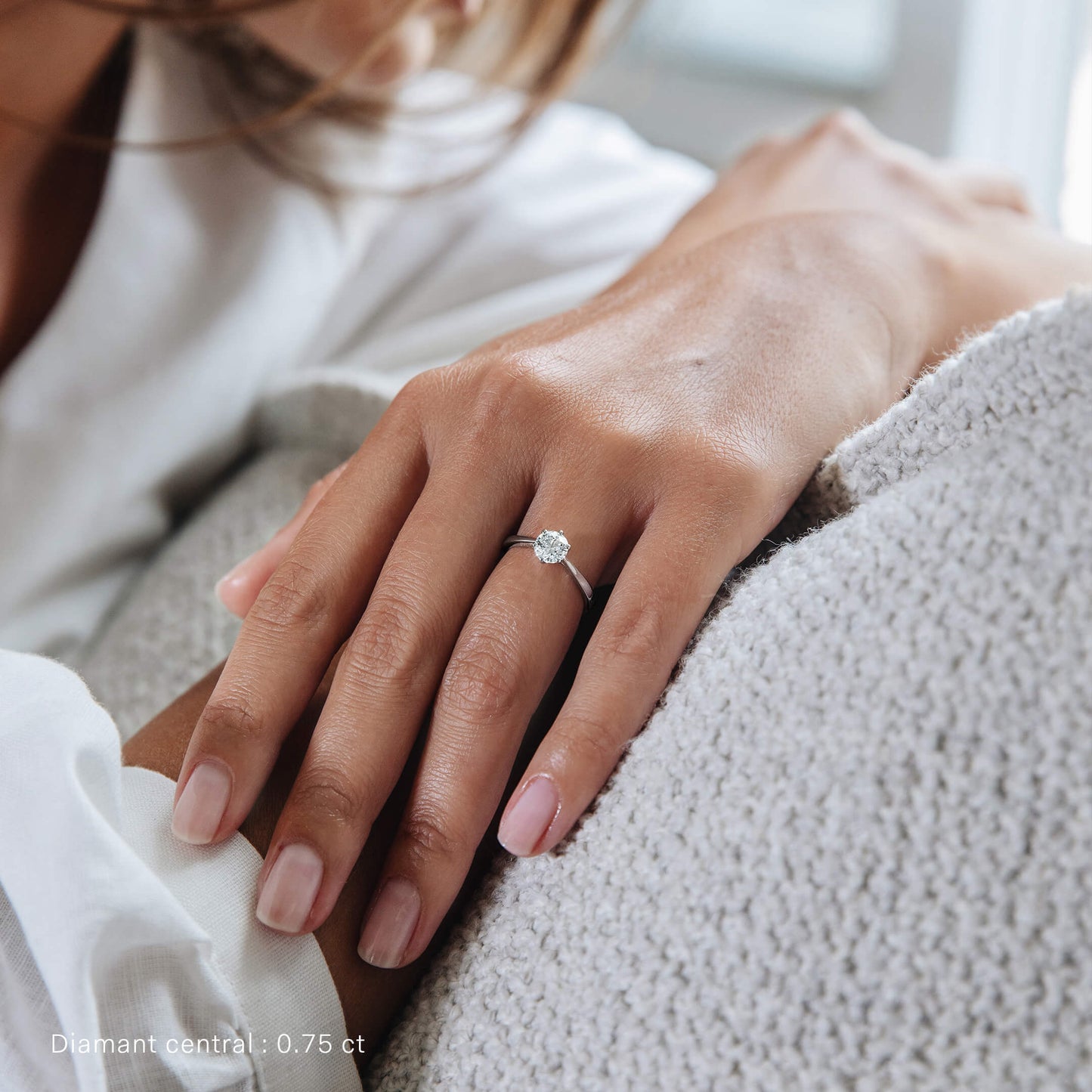 Son côté classique et discret vous permet de la porter facilement au quotidien et se complète à merveille avec notre alliance diamant Elsa pour un look équilibré et moderne ou à notre alliance Vittoria pour un duo romantique et plus créatif.