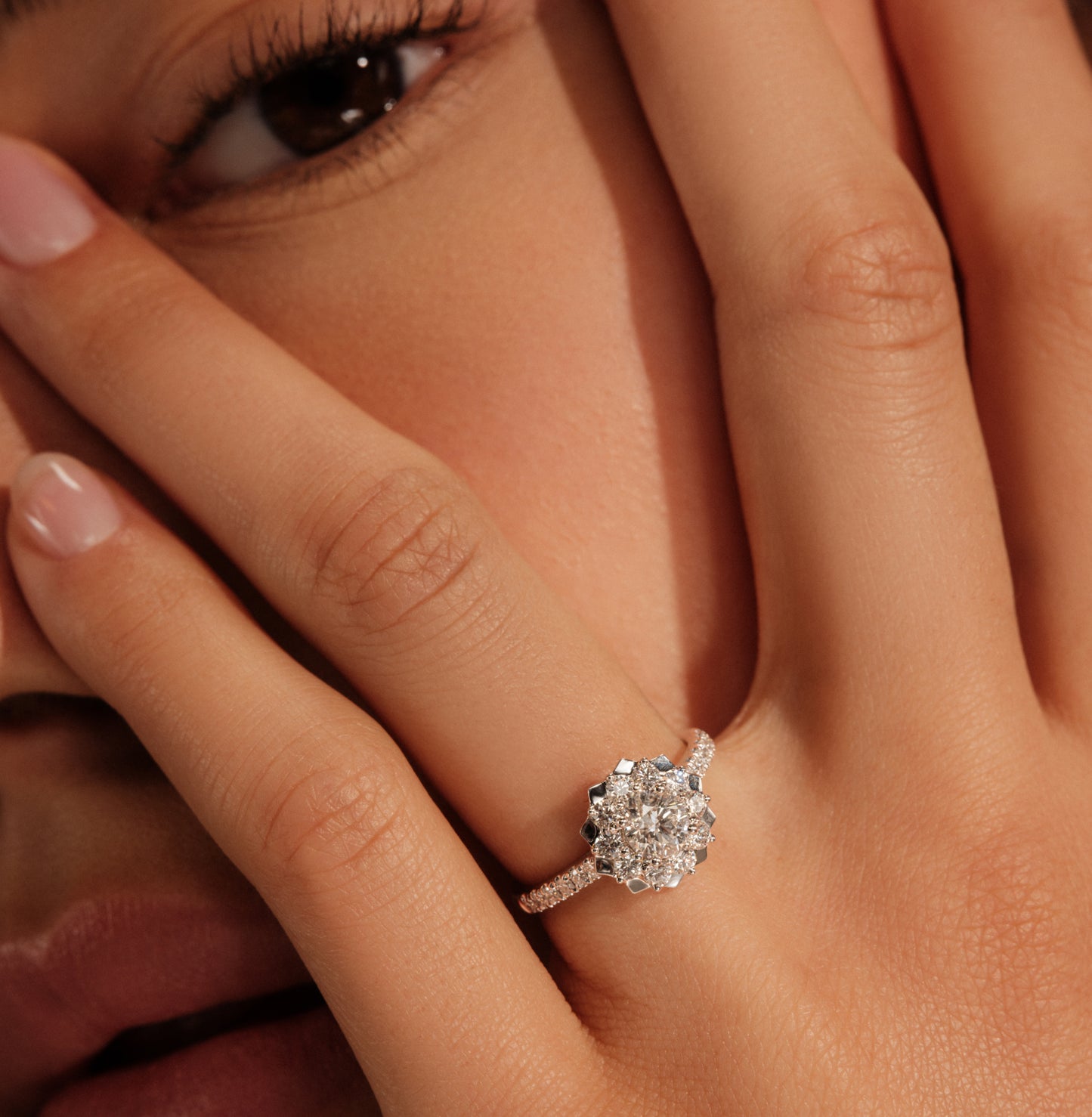 Cette bague contemporaine revisite le design classique de la marguerite en y ajoutant une touche de modernité.
