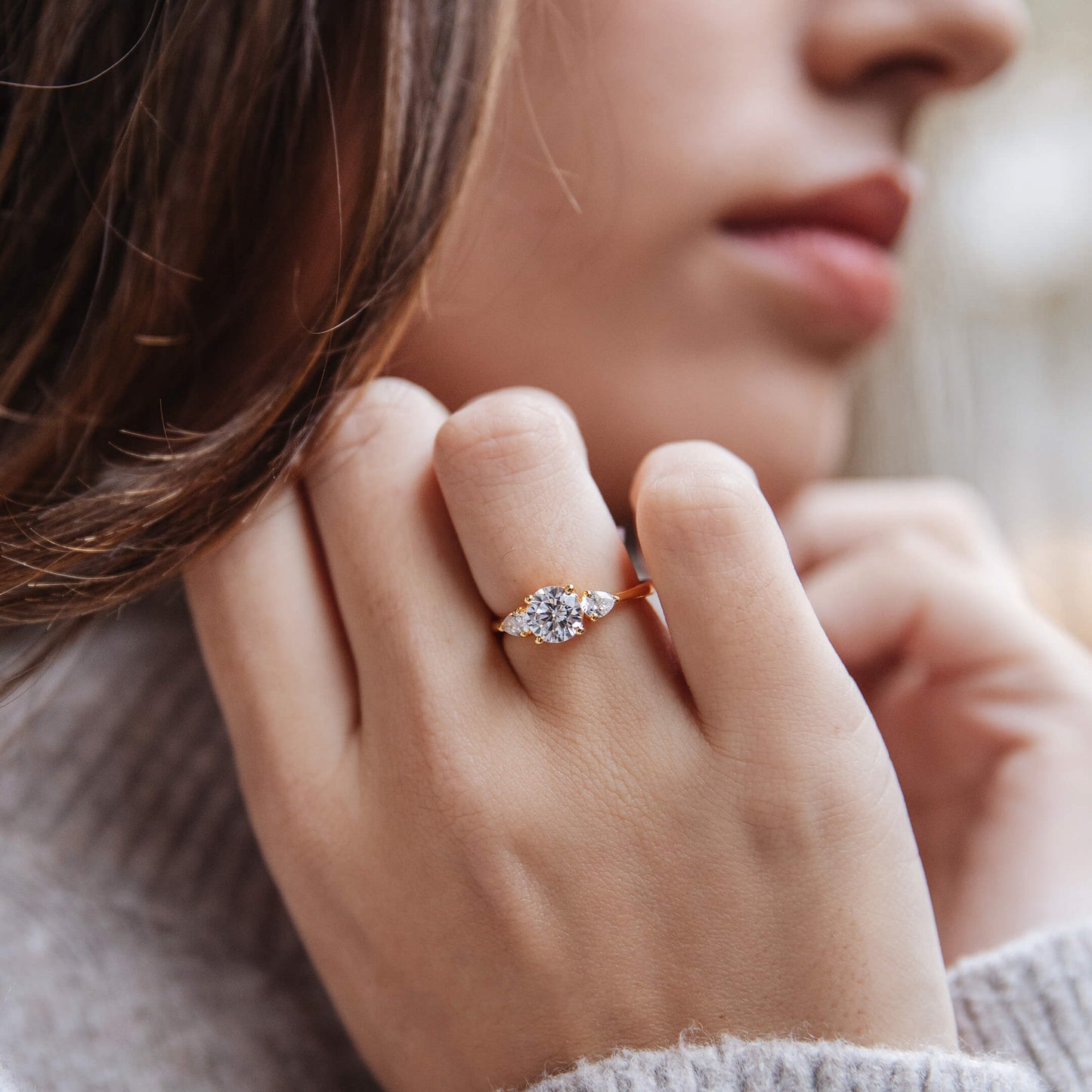 Inspirées d’un héritage, les trois pierres de la bague de fiançailles Maylis symbolisent la connexion entre le passé, le présent et le futur.